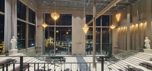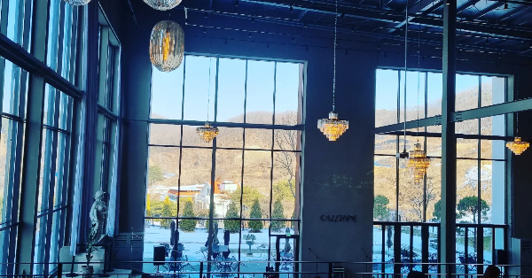 1층 커다란 공연장 같은 곳은 처음 오는 사람들에게 인상적인 장소입니다. 건물의 웅장한 부분도 그렇고 창밖의 정원이 조화롭게 만들어져 있습니다. 내부의 높은 천장과 계단에 마련된 좌석들이 바깥 풍경을 감상하면서 오페라 공연을 보는 장소 마냥 화려한 조명과 함께 그리스 신화의 느낌을 담아냅니다. 1층의 탁 트인 풍경이 본다면 마음을 비우는 힐링의 장소가 될 것입니다.