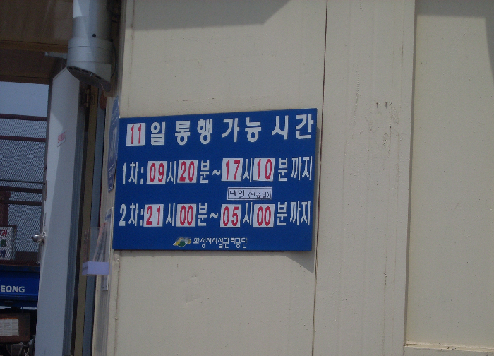 | 일자 | 요일 | 1차 통행시간 | 2차 통행시간 |