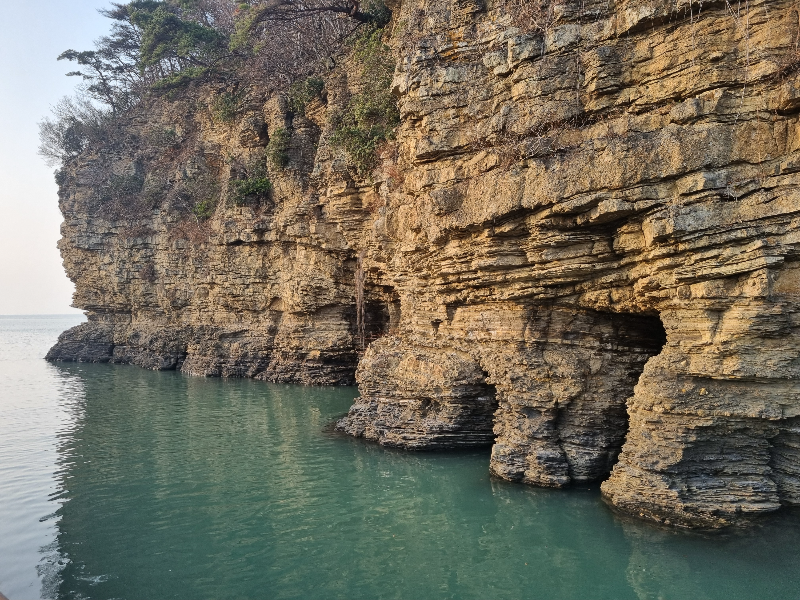 다만 수면 위로 붉은 줄무늬 해식 동굴이 보입니다.⛱️