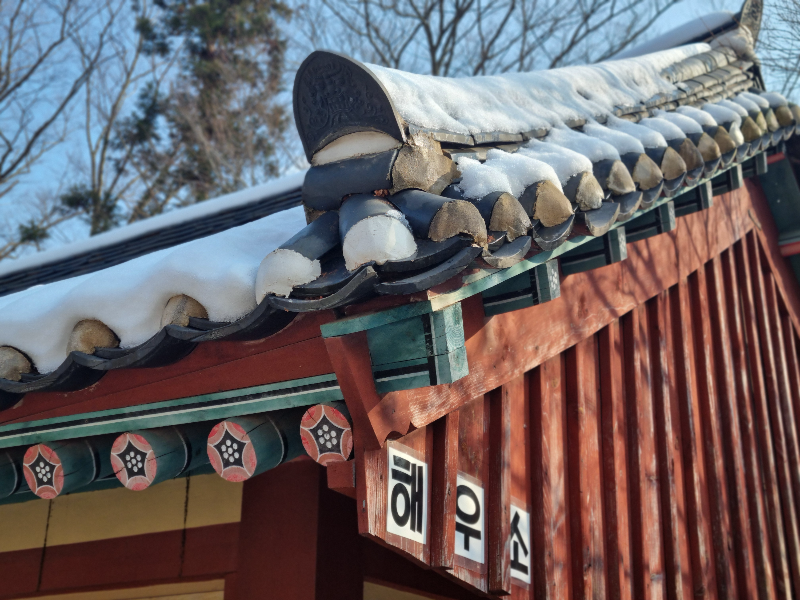얼마전 내린 눈으로 전국에 눈이 많습니다. 날씨가 따뜻해서 처마 아래로 눈이 녹아 내립니다.