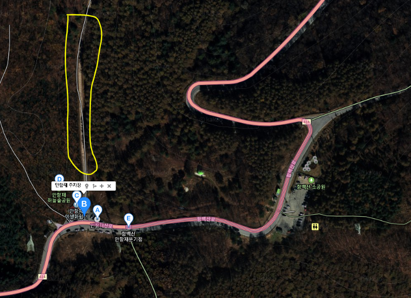 시간이 남으면 "함백산 소공원", "함백산 제1주차장 또는 함백산 등산로 입구까지 차량으로 이동하여 쉽게 등산도 가능한 코스입니다. (아래 참고)
