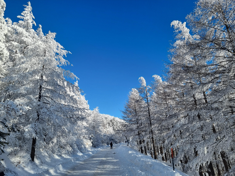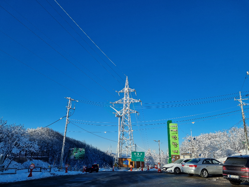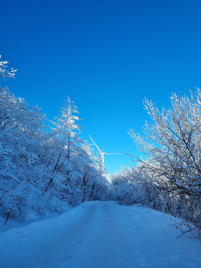 아래와 같이 길을 따라 멋진 설경을 구경할 수 있습니다. 대형 풍력 발전소를 보고 다시 돌아오면 20~30여분 눈꽃 구경을 할 수 있습니다.