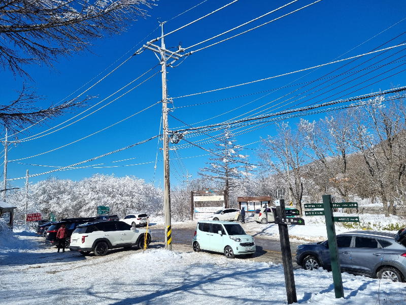 - 함백산 등산로 입구에 도로변에 차량을 주차하고 등산을 하면 0.9km으로 가장 짧게 함백산 등산이 가능합니다.