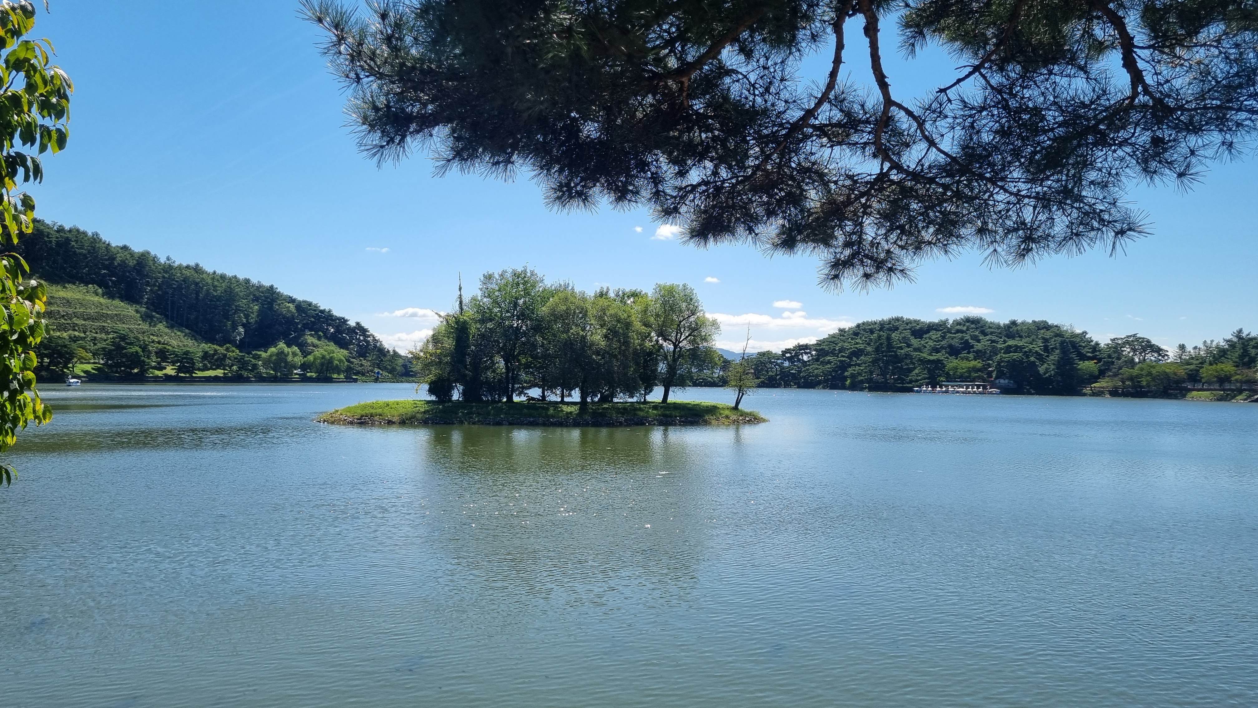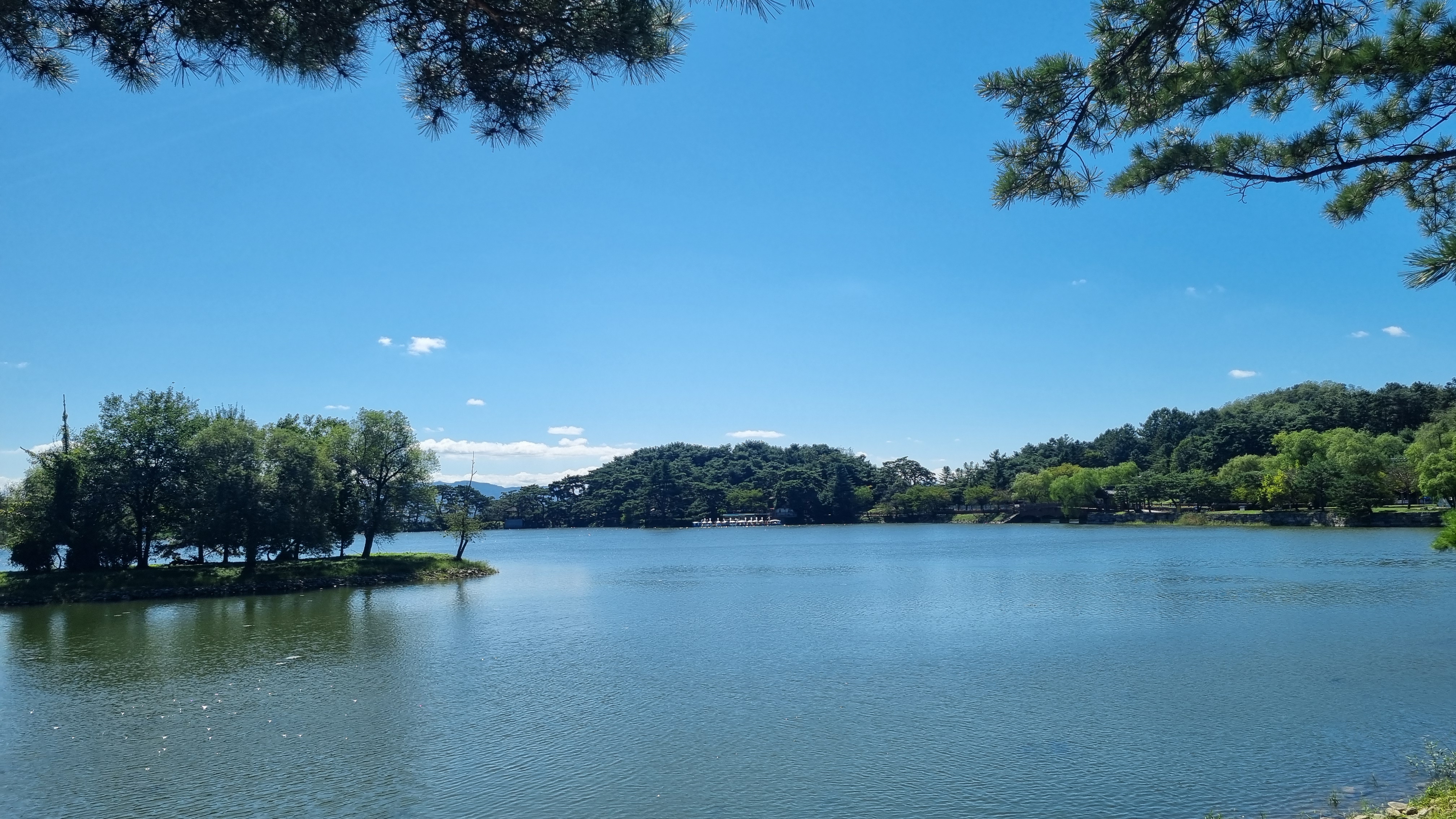 비룡당 저수지 둘레길가 벤치에서 잔잔한 호수를 바라보며 마음의 평화를 느낄 수 있었습니다.