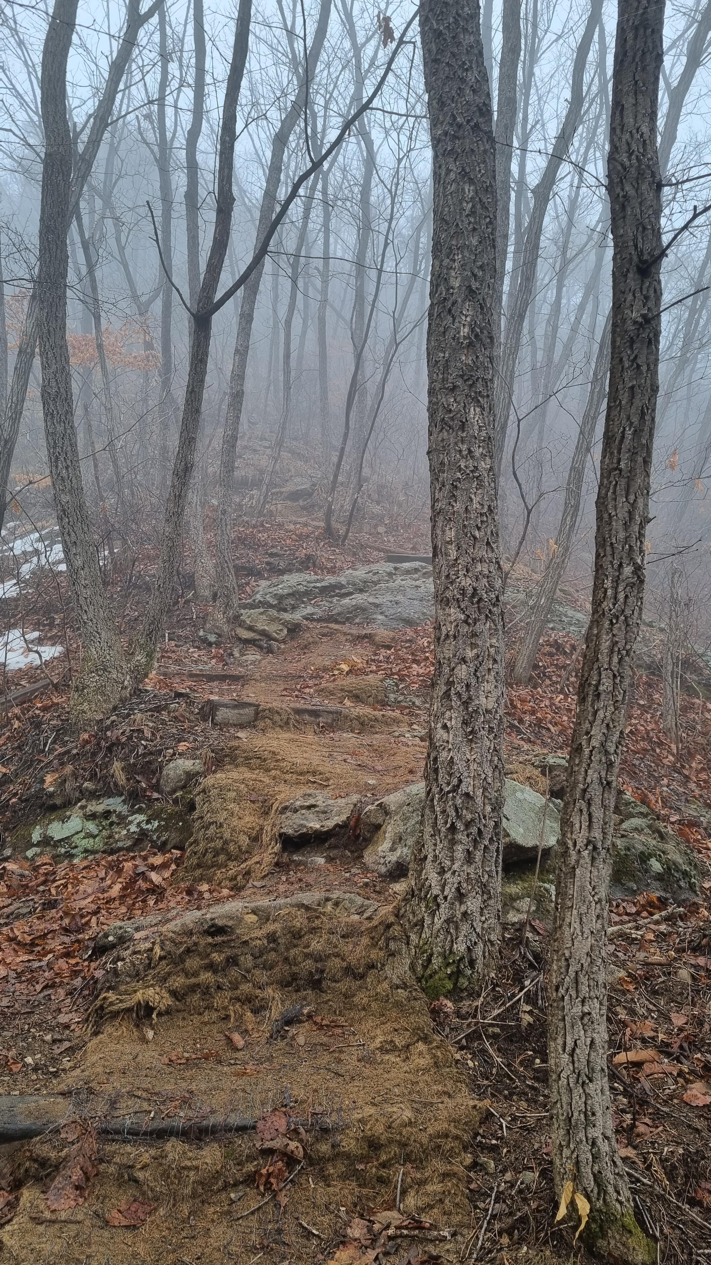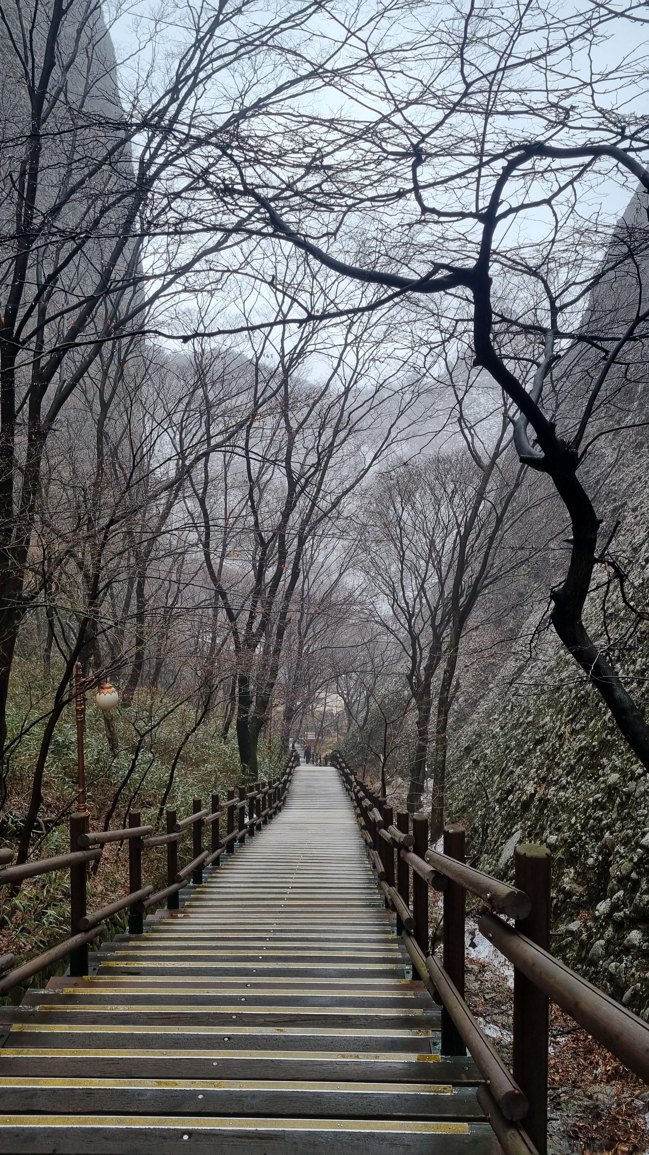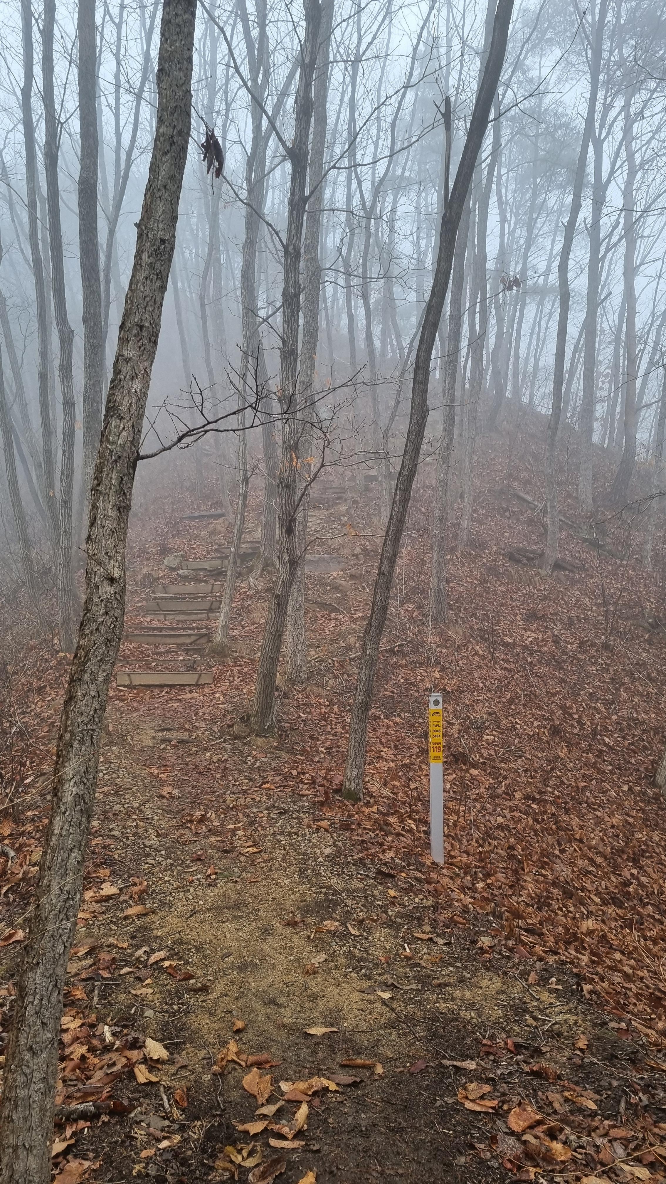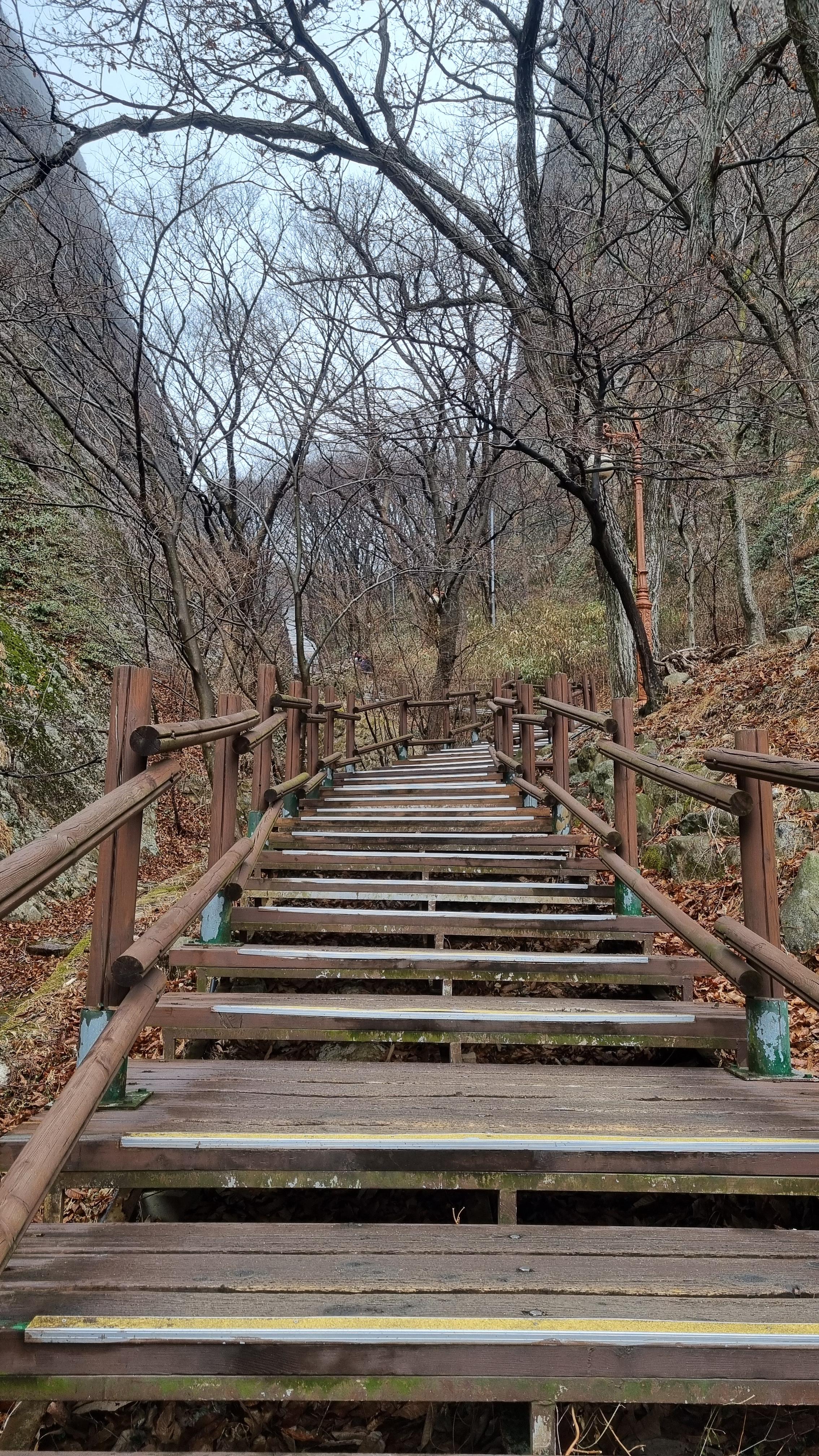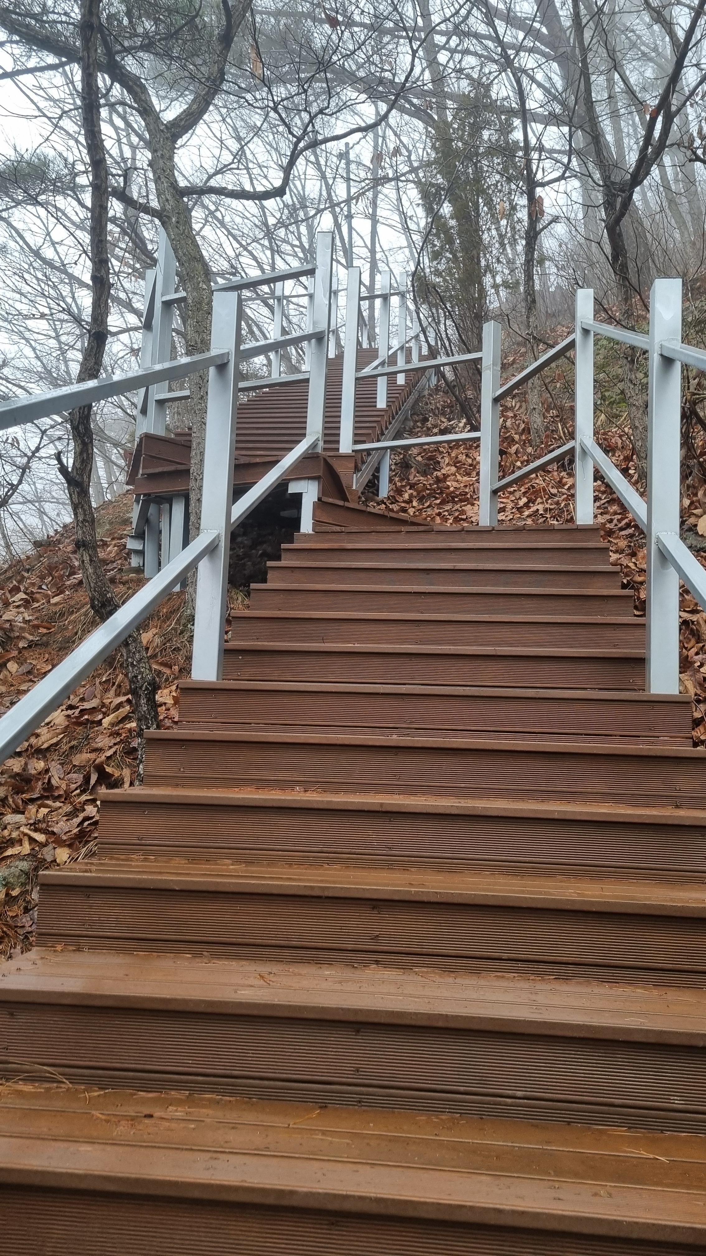 전망대를 지나 내려가는 길도 가팔라서 봉을 잡고 살금살금 내려왔습니다. 겨울비고 오고 길바닥이 조금 미끄럽습니다.