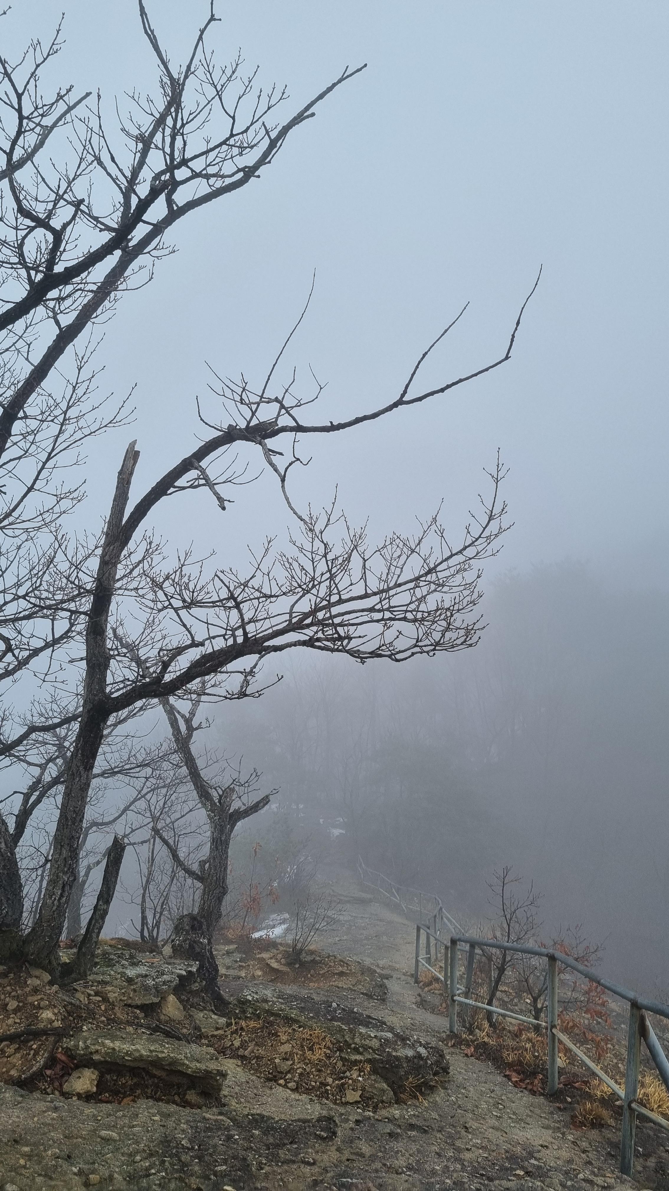 계단을 올라와서 보니 아래가 보이지 않는군요.. 저 앞은 딱 봐도 낭떠러지라고 안개가 알려 줍니다.