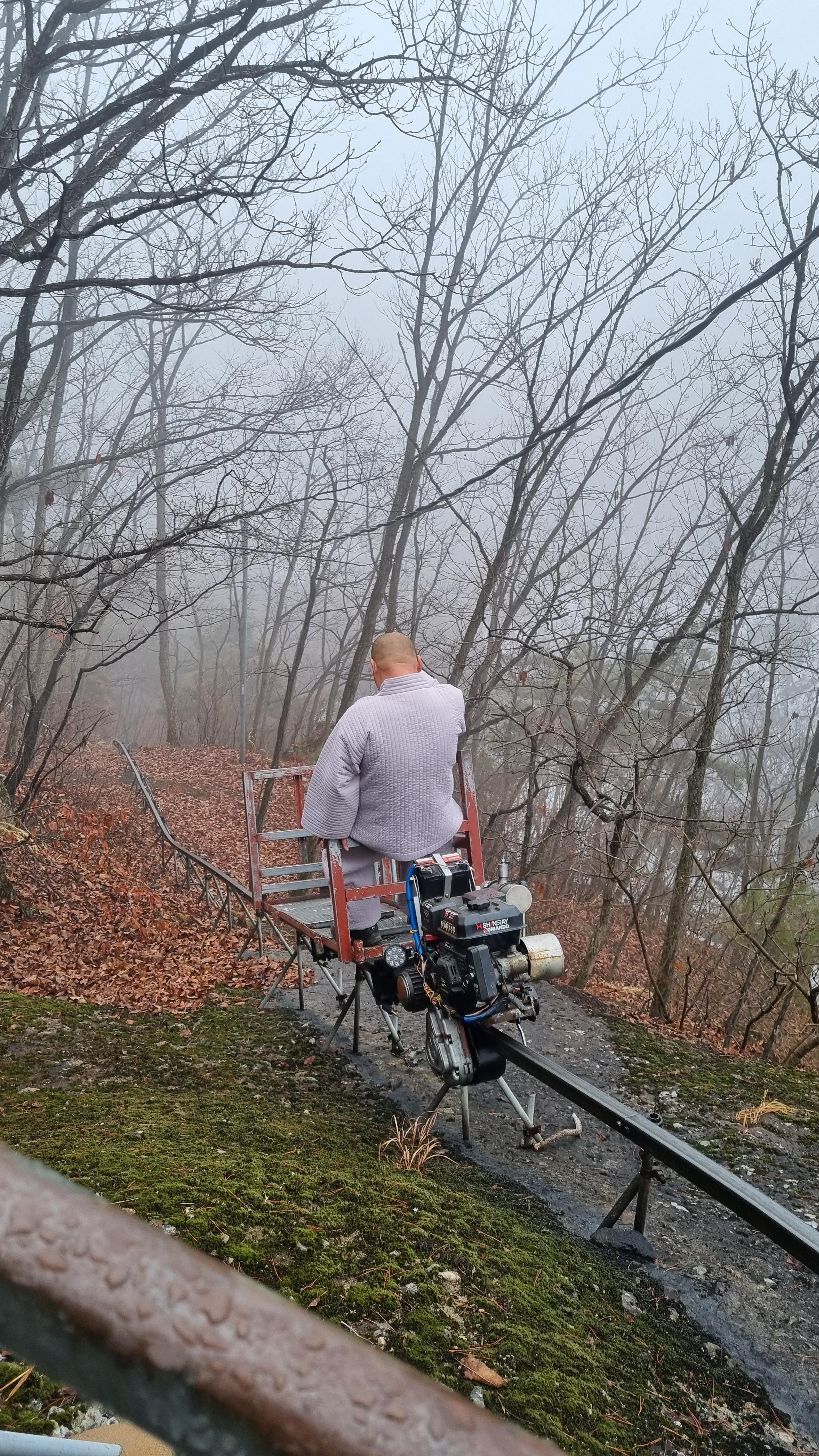 고금당으로 오르는 길에 주지스님이 모노레일을 타고 내려가십니다. 아래에서 물건을 가져오려면 모노레일 없이는 힘들 것 같습니다. (경운기 소리인 줄 알았는데 모노레일이 아주 천천히 내려갑니다.) 가는 길에 모노레일이 걸쳐 있어서 넘어 다녀야 하므로 발 조심해야 합니다.