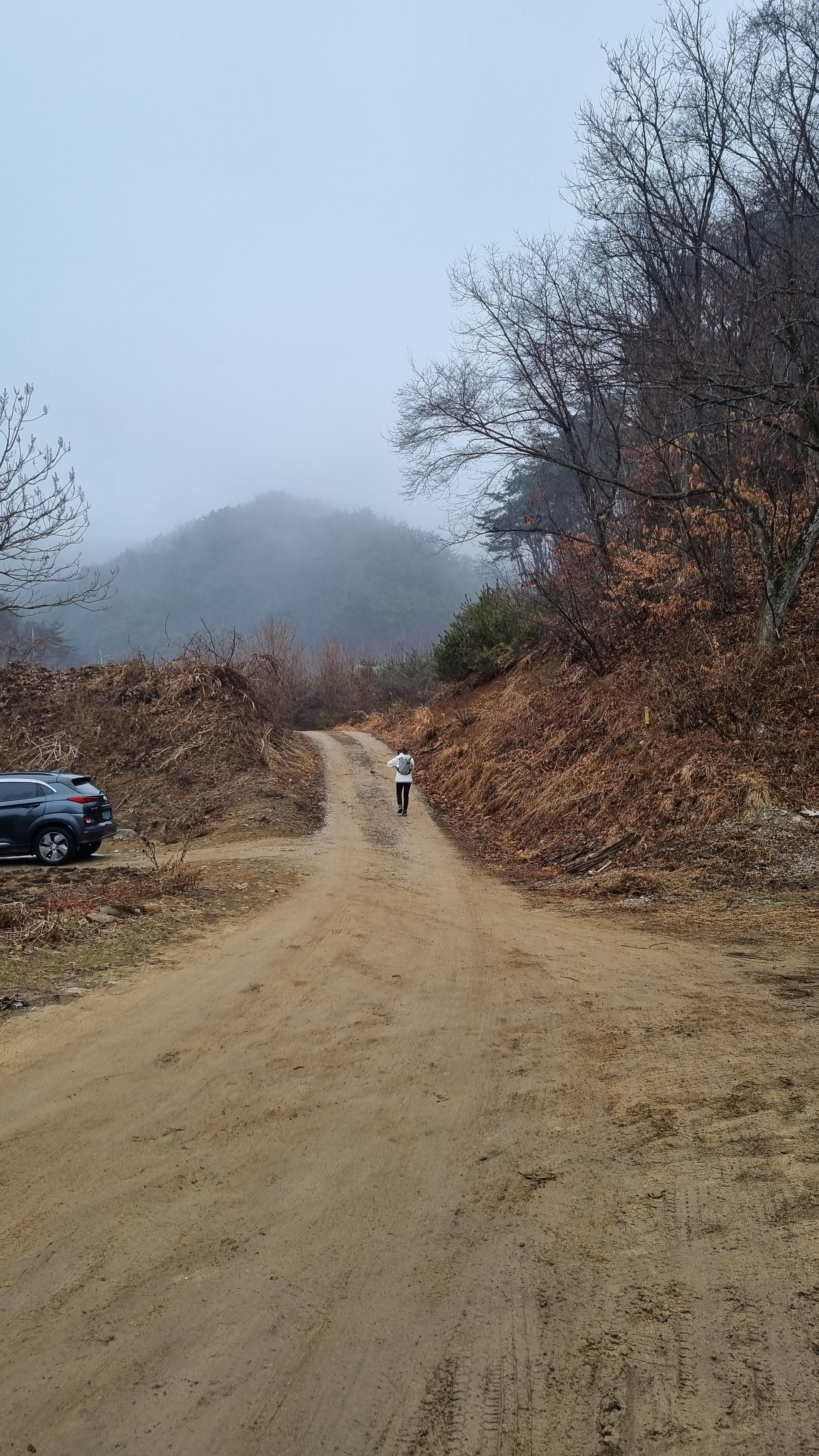 일반 흙길을 따라 계속 올라가면 됩니다. 2월 말인데 최근에 눈이 많이 와서 길이 아직 얼음으로 얼어 있었습니다. 아이젠을 신을까 하다가 조심해서 걸어가면 될 정도입니다. 눈이 많이 오는 날에는 무조건 아이젠을 신고 가야 하는 길 같습니다.