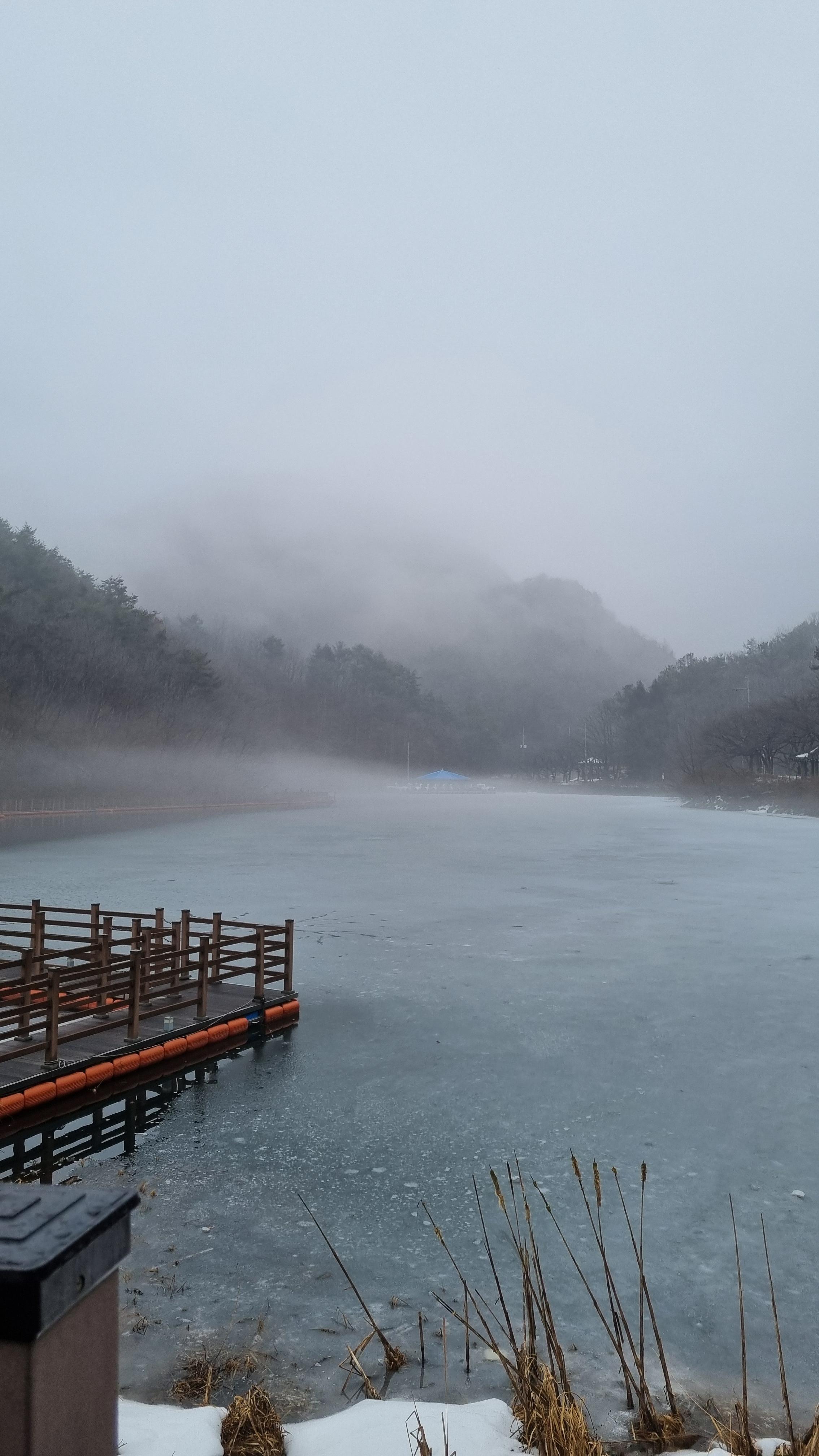 탑영제 호수에 물안개가 자욱합니다. 신비한 마이산 탑사를 구경할 마음의 준비를 합니다.