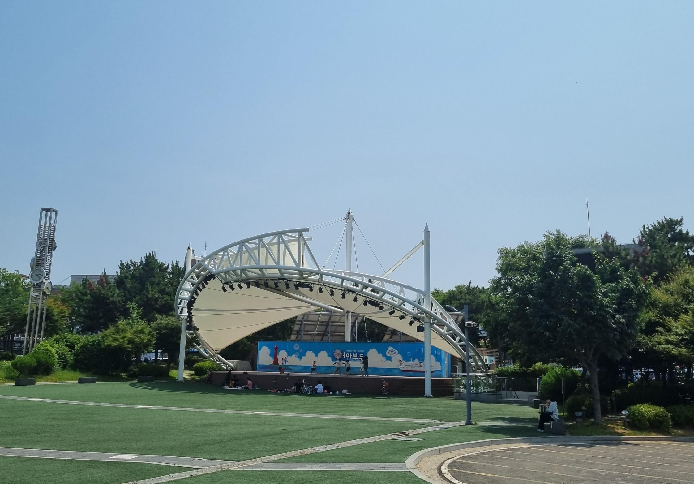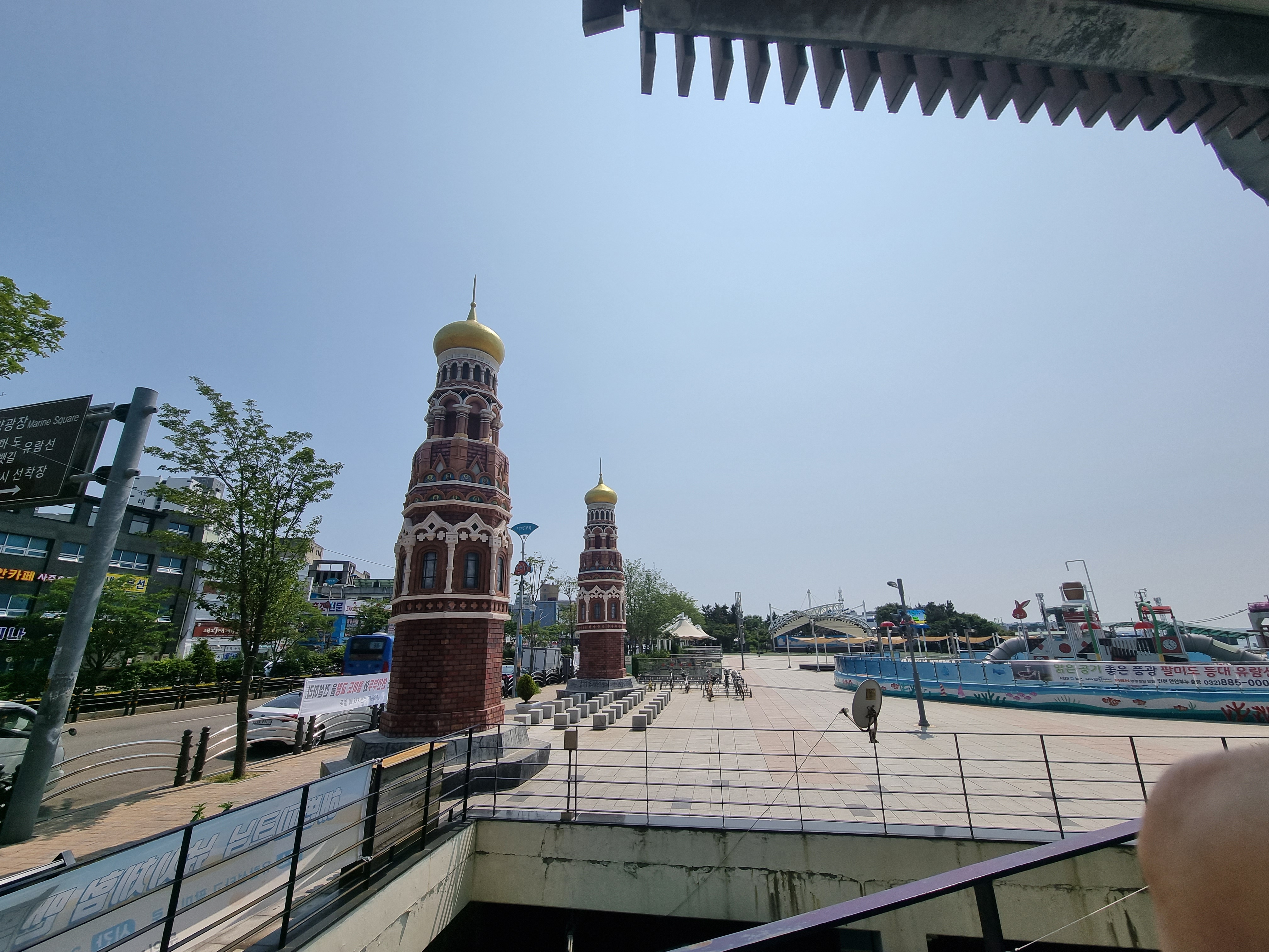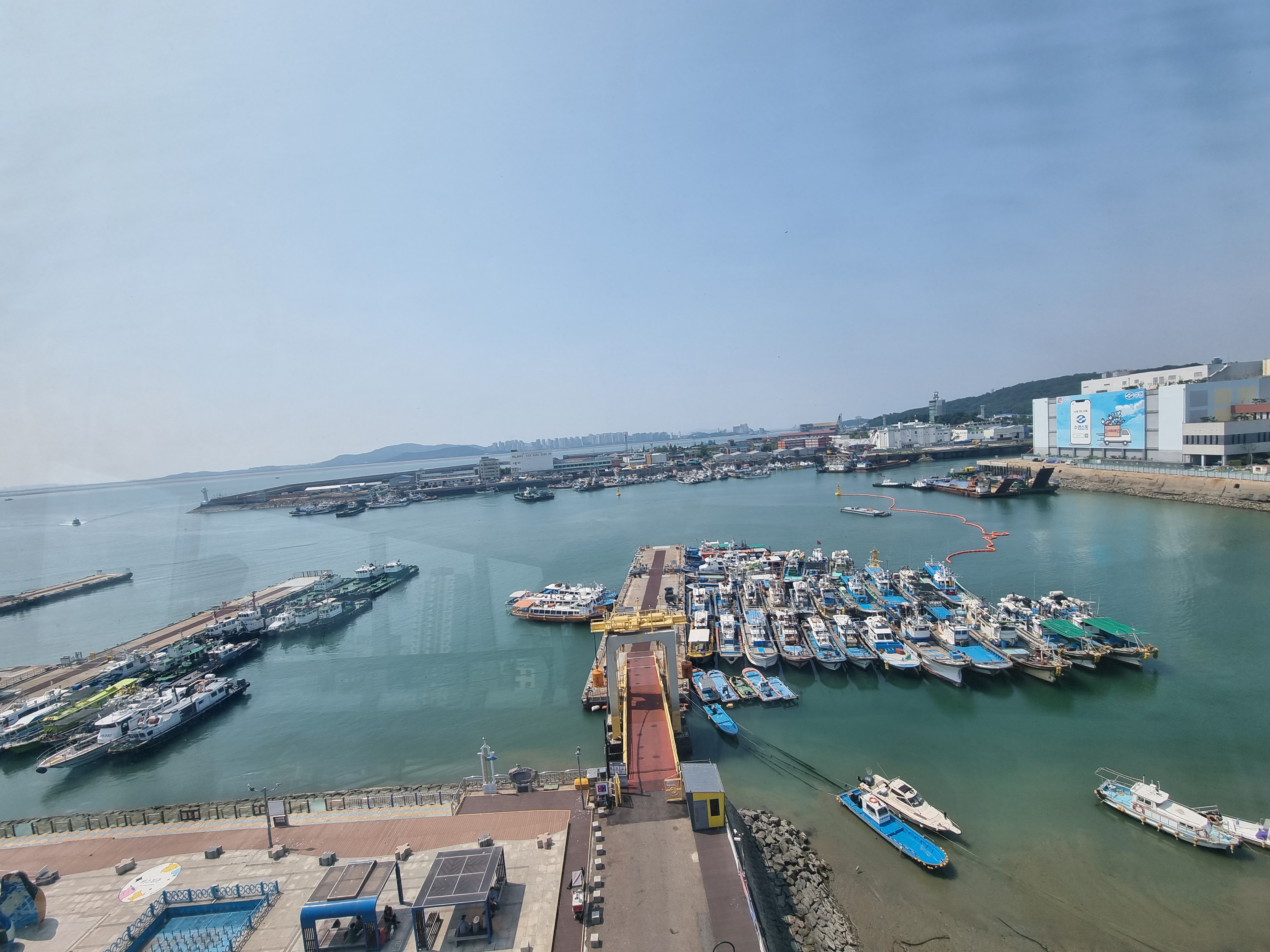전망대에서 바라본 상트페테르부르크 광장과 연안 부두 전경입니다. 멀리는 서해대교가 지나가고 먼 바다로 나가는 배들이 하나둘 움직이는 모습을 구경할 수 있습니다. 광장 지하는 주차장인데 오늘도 만차 였습니다.